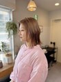 ミルクティーベージュ/ミディアムボブ/ワンブリーチ