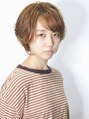 動く束感のある毛先。丸みのあるトップくにびれる襟足。メリハリのあるショートボブスタイル。オレンジ系カラーで明るい印象に。