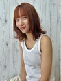 カット・鎖骨ぐらいの長さで表面にレイヤー入れて軽い質感に・顔周りは輪郭に合わせてカットカラー・ブラウンよりのオレンジ夏に人気な色味です