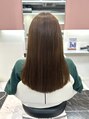 切りっぱなしのロングです。プレックス剤を使用したダメージレスカラーです。