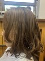 トップから中間にかけてレイヤーを入れて、コテ巻き風パーマで軽やかな動きを出しています 白髪ぼかし/ハイライト/髪質改善/インナーカラー/土浦/阿見/荒川沖/