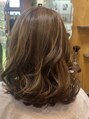明るめのカラーリングとハイライトコテ巻き風パーマ