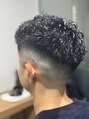 アウトラインはフェードで刈り上げ、上はランダムにパーマを強めにかけた外国人風スタイル短いスタイルの場合パーマは強めがおすすめどんな年代でもOK[外国人風パーマ/刈り上げ/ベリーショート/メンズパーマ/横浜/元町/石川町]