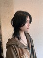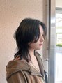 ロングウルフかっこよく大人ウルフへスタイリングは、軽くコテで巻いてます♪