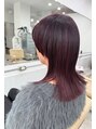 マッシュウルフセミロングピンクレッド小顔似合わせカットバング/ホットペッパービューティー