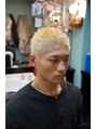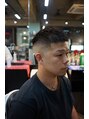 トップはツイストパーマで動きを出し、襟足ともみあげは低めのテーパーフェードを入れています!トップにボリュームがあり動きが出るので、メリハリのあるスタイルです!