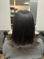 ブリーチなしでも、少し明るくなるように1トーン上げたカラーです。外ハネにしやすいように、毛先をぼかしました。