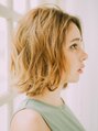 ワンレングスのボブがベースのスタイル。表面をメインに大きめのウェーブがでるようにパーマをかけています。クシャッとしたくせ毛風のデザインでラフな印象!ざっくり分け目をぼかしたセンターパートでオシャレに!