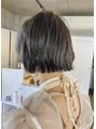 【気に入ったスタイルはブックマークをしていただくと便利です】カットはライン感ある切りっぱなしのコンパクトボブにフェイスレイヤーを。髪色は表面、前髪、顔周りインナーをケアブリーチ後、全体はダークグレー、ブリーチ部分はペールベージュをオンカラー