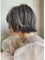 【気に入ったスタイルはブックマークをしていただくと便利です】カットはライン感ある切りっぱなしのコンパクトボブにフェイスレイヤーを。髪色は表面、前髪、顔周りインナーをケアブリーチ後、全体はダークグレー、ブリーチ部分はペールベージュをオンカラー