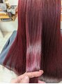 ワインレッドのヘアカラーです♪元のお色が明るいのでブリーチ無しのヘアカラーになります!ハッキリとしたレッド系がいいとご注文だったので、しっかりお色を入れました!※当店で特殊カラーをご検討の場合はLINEなどで事前にご相談下さい。