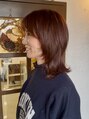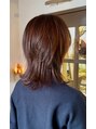 ウルフヘアとオレンジブラウンカラーになります。顔まわりをしっかり切り込んで、少し個性的で、品のあるスタイルです。