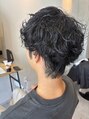 刈り上げまではしないけどサイドとネープは短めでスッキリさせてトップは長さを残す事によってメリハリのあるスタイルに。ランダムにパーマをかけて朝のスタイリングも楽に。