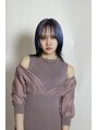 カットは、ナチュラルなウルフに。カラーは2回のブリーチベースに根本は「紫」、中間が「青」、毛先にグレーを入れたグラデーションカラーにしています。ブリーチ2回で透明感のある色落ちも綺麗な色です。
