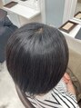 ヘナを始めて2回目のお客様です。1ヶ月半に一度のペースで続けて下さっています。最近までグレアカラーで染めていた髪を、白髪の少ない今ヘナにチャレンジすることにしました。リタッチで染めているので、これから更に伸びるとクセのおさまりが良くなります。