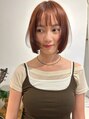 ブリーチなしで出来るオレンジブラウン首のスッキリ見えるパツっとbob人気です◎ あご下ラインで切り揃えたボブに、エアリーなシースルーバングをプラス顔まわりの軽やかなカールが小顔効果も◎/ダブルカラー/ブリーチカラー/ブリーチ無しカラー