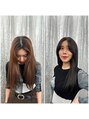 顔まわりにレイヤー入れてアレンジもしやすく小顔に見えるようにつくりました。いろは1度ブリーチをしてオンカラーはオレンジブラウン