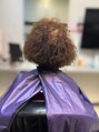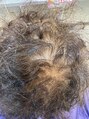 80代の白髪染毛の矯正です。ヘナで染めてみえますがさすがに髪の余力はあまりありませんので優しい薬剤でゆっくり伸ばしました。