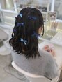 推し活 イベント 量産型 編み込みハーフツイン+リボンアクセ
