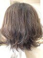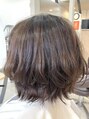 ショートレイヤーボブ。襟足は一部刈り上げておさまりよく。デジタルパーマで毛先のメリハリを。10トーン・シアーベージュカラーて柔らかい仕上がりに