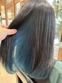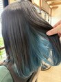 トップの表面は暗めの設定にして、内側のみブリーチをして青緑系の色味をいれて透明感をだしました!トップは染めずに地毛を残してカラーしてもいいので、伸びてきても安心です!ブリーチ回数を増やせば更に透明感あるカラーに!