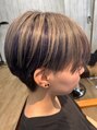 ベースはブリーチあり。今回は褪色した部分にアンカラー。(アンブレラ)インナーはパープル、表面はシルバー。