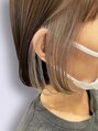 ちらっとみえるイヤリングカラーが可愛い!あえての抜きっぱなしホワイトでおしゃれ感をプラス。全体カラーは1回ブリーチのマロングレージュに。髪質改善トリートメントで艶と柔らかい髪質にします!