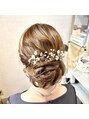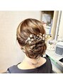 髪の色とヘアアクセサリーの色がピッタリ!やや大きめの豪華なネープシニヨンがお似合いです。
