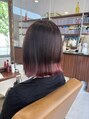 ピンクの裾カラー!きりっぱなしボブに毛先をブリーチしてピンクラベンダーカラーを入れました!濃いめに入れることで色もちもアップさせてくれます♪
