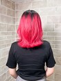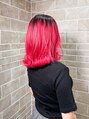 根本の黒髪部分を染めずにそのまま残したバレイヤージュカラー。ヴィヴィッドな色味が映えるデザイン。