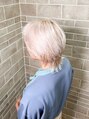 しっかりブリーチして染め上げたホワイトブロンド。中性的なヘアスタイルとマッチします。します。