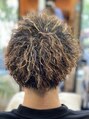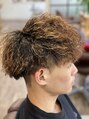 マッシュベースのスタイルに少し強めのツイスパをかけて細めのハイライトを入れて仕上げました。