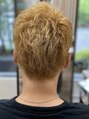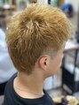 サイドはツーブロックで後ろは刈り上げてスパイキーショートスタイルです。カラーはケアブリーチを一回して透明感が出るように薄めのブロンド系の色を入れて仕上げました。