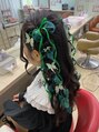 飾りいっぱいのハーフツインアレンジへア大事なイベントのために推しカラーがいっぱいのハーフツインにしました^^使いたい飾りをもってきてあとはおまかせ!!もOKですのでぜひご相談ください^^