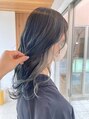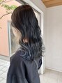 イヤリングカラーにホワイトカラーと毛先にアクアブルーの色を♪表面は暗めのブルーブラックでコントラストをつけました☆