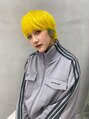 ショートスタイルにブリーチ2回して、原色のイエローとサイドにライムグリーンを使った派手髪カラー。