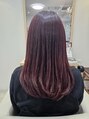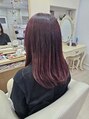 ボブスタイルに、全店的にレイヤーを入れて軽くしました。カラーは、過去にブリーチと黒染め履歴がありますが、今回はブリーチなしでボルドーレッドにカラーしました。軽く内巻きに巻いて仕上げました。