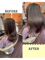デジタルパーマベースに前回は表面ストレート今回は髪質改善メテオカラートリートメントイルミナアース+サンセットのベージュピンク系で嫌なオレンジ味を透明感のある感じに