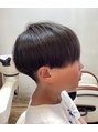 サイドは3ミリのツーブロック、バックは3ミリのフェイド、前髪ながめのマッシュスタイル。