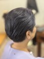 ムラサキカラーがとてもお似合いでした!お白髪をムラサキに染めたいとのことカットは半年ぶりで、短めにしました!刈り上げショートです!