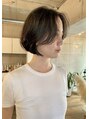 【気に入ったスタイルはブックマークをしていただくと便利です】カットはライン感ある切りっぱなしのコンパクトボブ。前髪は長め設定でレイヤーラインに。仕上げはラフにストレートでお手入れも簡単♪[薬院/警固]