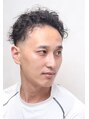 フェードのツーブロックにボリューム感を上げる為、パーマをくるくるにかけました。