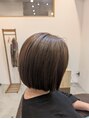 赤みを抑えたカラーでぱっつんすぎない丸みのあるボブです