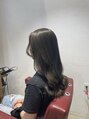 赤みとオレンジみをけした透明感のあるアッシュグレージュカラーです!ベースが明るめだったので、色味がよく出たカラーになっています。スタイリングは32ミリのコテで波巻きとリバース巻きをミックスしてゆるめに巻きました。