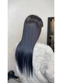全体にブリーチでハイライトを入れてベースはハイライトとのメリハリが付くようにダークグレーに!ハイライト部分は青みに少し紫っぽさがあるブルーパープルをオン!ベースのダークグレーとブルーパープルでメリハリがあるオシャレで個性的なカラーに♪