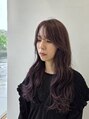 ダークトーンだけど透け感のあるブリーチカラーです!ロングスタイルと目にかかる前髪が大人の色気を感じるデザイン。