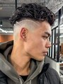極道パーマホワイトメッシュフェード短髪メンズ髪型/ホットペッパービューティー