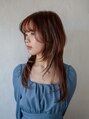 個性派ロングウルフスタイル。ベースの長さは長めに設定してレイヤーは顎下くらいからザクザク入れています。少しカールをつけただけで動きが出てかわいいです!ヘアカラーはオレンジブラウンであたたかみのある雰囲気を出しています!