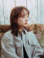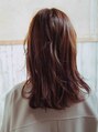 鎖骨よりしたの長さで、カットし、トップと顔周りにレイヤーの入ったスタイル。重たさを残しつつレイヤーが動きが出ておしゃれに巻けるスタイルでおすすめ。カラーは艶感のある暖色系で落ち着いた大人可愛いカラーに。