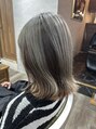 ナチュラルな外ハネ仕上げで毛先を軽く外巻きにすることで、柔らかさと抜け感!カラーは透明感のあるグレー系とベージュをミックスしたハイトーンカラーで、光の当たり方で印象が変わるツヤ感と柔らかさが特徴。赤みを抑えてくれるので、外国人風の印象に。